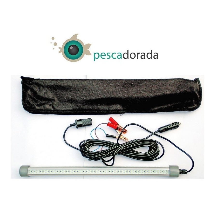 LUZ SUMERGIBLE DE 150 LEDS Y 60W DE POTENCIA. 9600 LUMENS , PROPORCIONA MUCHA LUZ BLANCA PARA LA ATRACCIÓN DE LOS CALAMARES. 50CM DE LARGO. CABLE LARBO PARA SUMERJIRLO EN LAS PROFUNDIDADES.