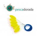 Perla ovalada con tope de alta flotabilidad ideal para la pesca de competición. Unos acabados de altísima calidad hacen que sea el accesorio más demandado por los profesionales y amantes del surfcasting. Empleada para la búsqueda de peces que comen a media y alta agua, también para evitar los crustáceos. Bolsa de 6 uds.