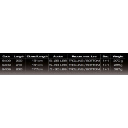 Versión actualizada del reconocido y contrastado modelo “Crazy kayak” desarrollado específicamente para la pesca desde kayak y embarcaciones ligeras. Podremos utilizarla como caña de trolling, ya que su firme blank “Power sense” de una sola pieza, nos aporta una acción ideal para esta modalidad, mientras que su cónica y elástica puntera sensitiva nos aportará una lectura clara de lo que está pasando en el fondo pescado en vertical. La empuñadura de la caña está equipada con una anilla metálica de seguridad a través de la cual tendremos la posibilidad de conectarla al kayak mientras estamos navegando. (Cable no incluido). Está equipada con anillas Fuji BC-MNOG y portacarretes Fuji DPS. Para un correcto mantenimiento, conviene recordar que tras cada jornada de pesca es necesario enjuagar con agua dulce y secar apropiadamente nuestro equipo de pesca.