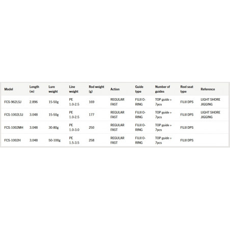 La Firstcast FCS-962LSJ de Major Craft es una caña diseñada para quienes se inician en el shore jigging o buscan una opción polivalente, ligera y fiable. Su construcción en carbono ofrece una excelente combinación de sensibilidad y reserva de potencia, ideal para manejar jigs metálicos o vinilos en zonas costeras.