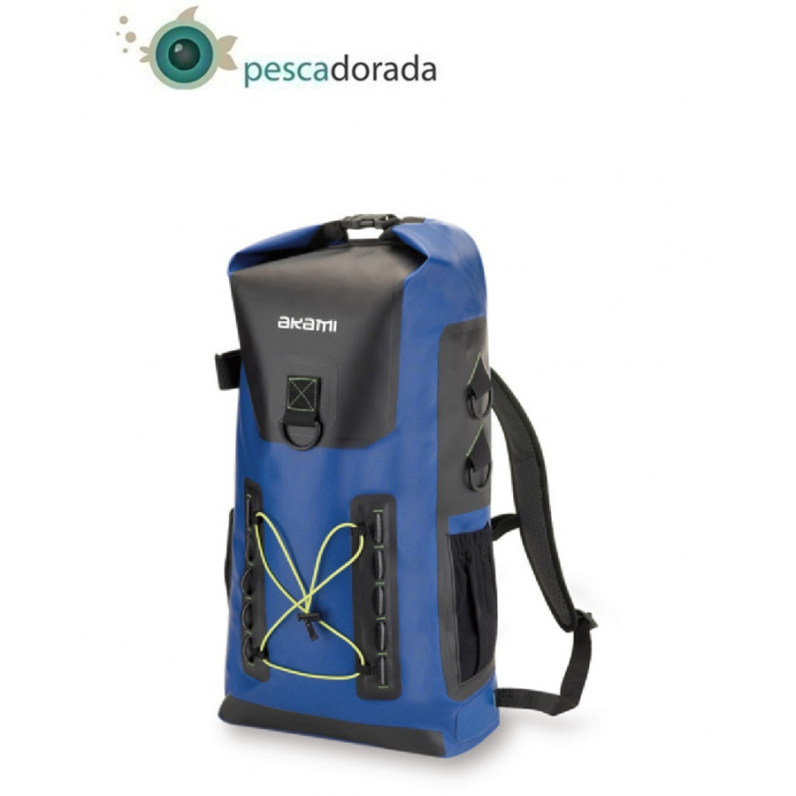 Mochila de material hidrofóbico confortable de cremalleras autoselladas. Equipada con bolsillos estancos al agua con cierre de seguridad.