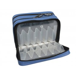 Bolsa porta señuelos con 3 bolsillos que tiene 12 huecos para meter nuestros señuelos. Semirigida,impermeable y con asa de transporte.