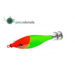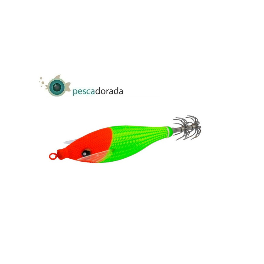 Este señuelo está diseñado para atraer calamares incluso en las condiciones más exigentes. Su acabado en tela texturizada imita fielmente las escamas de un pez, mientras que su cuerpo luminoso lo hace visible en aguas oscuras o durante la pesca nocturna.