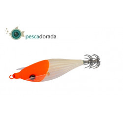 Este señuelo está diseñado para atraer calamares incluso en las condiciones más exigentes. Su acabado en tela texturizada imita fielmente las escamas de un pez, mientras que su cuerpo luminoso lo hace visible en aguas oscuras o durante la pesca nocturna.