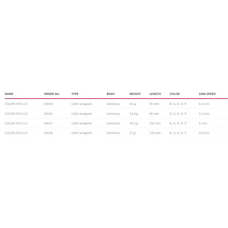 Tamaño 4.0 - Peso 27gr - Longitud 120mm - Hundimiento 3,8s/m