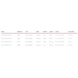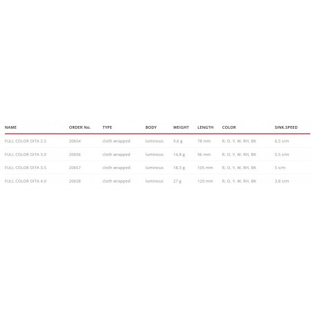 El cuerpo del señuelo es luminoso, pero debido al tejido muy grueso y resistente, el efecto de brillo es muy bajo, enganche giratorio, cuerpos perfectamente equilibrados, textura de delicada y suave tela que parece de escamas, doble corona en acero inoxidable, ojos rojos fluo...