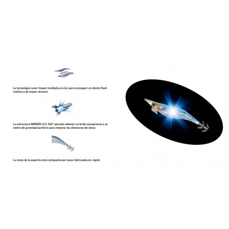 La tecnología LASER IMPACT proporciona al señuelo un brillo increíble de 360° para despertar la agresividad incluso en las condiciones más difíciles.