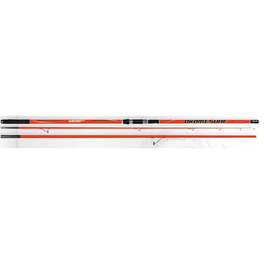Caña de surf-casting de tres tramos fabricada en Super High Modulus Carbon, cuenta con una acción semi-parabólica, con puntera híbrida, lo que permite una mayor sensibilidad a la hora de la detección de la picada. Caña manejable y ligera con empuñadura ergonómica, lo que le ofrece unas altas prestaciones en el momento de efectuar el lance. Anillas Low Rider SIC Sea Guides y porta-carretes DPS.