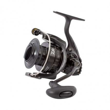 Equipado con una enorme rueda de control Digigear y un bastidor de aluminio, el BG (BLACK GOLD) es un robusto carrete pensado para el combate. Está dotado de un freno ATD de última generación con arandelas de carbono para controlar la lucha con serenidad. Su rotor en forma de arco (tecnología Air Rotor) es más aerodinámico para aumentar la fluidez de la rotación. El carrete gira sobre un rodamiento a bolas que favorece la rotación durante el combate.