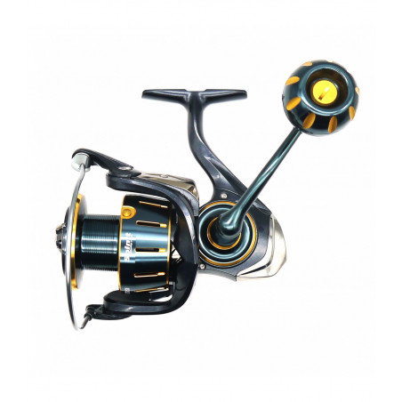 El Carrete Spinit KXR 6300 SS  tiene tecnología a base de 5+1 rodamientos a bolas, bobina de aluminio, manivela igualmente en aluminio, pomo de combate redondo, anti retroceso infinito (sin botón de retroceso o marcha atràs para evitar complicaciones y elementos superfluos) y guía hilos giratorio anti torsión.