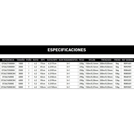 Capacidad línea trenzado: 300m/0.20mm
