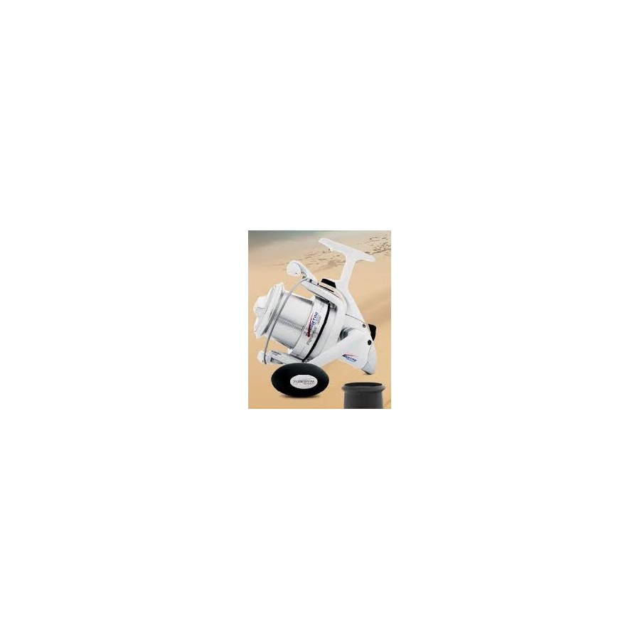 Este carrete es lo último para la pesca a grandes distancias. Sus principales características son la estabilidad del cuerpo y la forma especial de almacenar el hilo. El perfil de salida de la bobina está bastante retardado para que la recogida del hilo sea muy homogénea y exacta. Este sistema permite lances mucho más largos porque el hilo se desliza más fácilmente en la bobina. Otra ventaja es el ensamblaje especial entre bobina y cuerpo del carrete.Este mecanismo de protección evita que el hilo pueda resbalar por detrás de la bobina.
