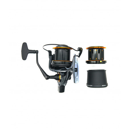 EL CARRETE RYOBI SHAKER 9000 ( Equivalente a un tamaño 14.000 de shimano) posee oscilación súper lenta de la subida y bajada de la bobina, lo que provocará una colocación de la línea de forma más paralela, facilitando así los lances extra largos. Además de esto, es un carrete muy ligero, está montado con 9+1 rodamientos inox y lleva incorporadas 2 bobinas extras ( En total 3 bobinas ). Un carrete con unas altísimas prestaciones y con la garantía de la marca Ryobi a un precio muy contenido.