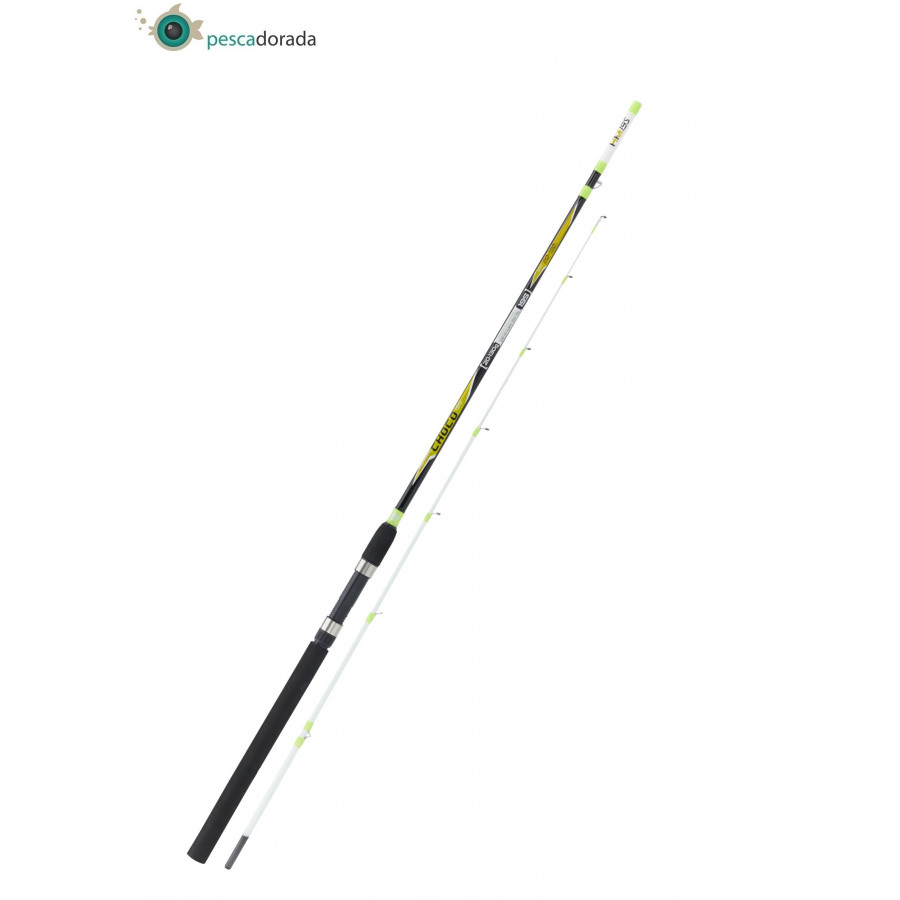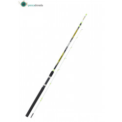 Caña de dos tramos para pesca desde embarcación, para pescadores ocasionales. Con puntero híbrido, anillas tipo MN y grips ergonómicos de espuma EVA antideslizantes.