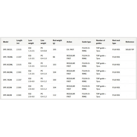 Modelo ideal para usar egis de tamaño nº2.5 a nº3, perfecto para apuntar a calamares cerca de la orilla. Excelente opción también para eging desde embarcación.