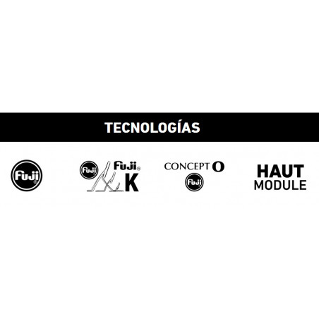 El blank de carbono reforzado está equipado con anillas Fuji Concept «O» (incluidos formatos específicos para el uso de trenzado en la puntera tipo Low Rider).