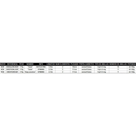 Los modelos «Tataki» permiten pescar con 100 g de lastre, mientras que la referencia «Deep Sensitive» ofrece un rango de uso más amplio, de hasta 150 g, para la pesca en zonas muy profundas (más de 50 m).