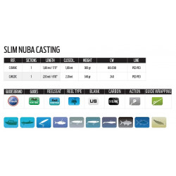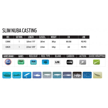 La Slim Nuba Casting es una caña técnica desarrollada para la pesca de jigging desde embarcación o kayak. Su construcción de carbono de alto módulo proporciona una buena relación entre ligereza y potencia.