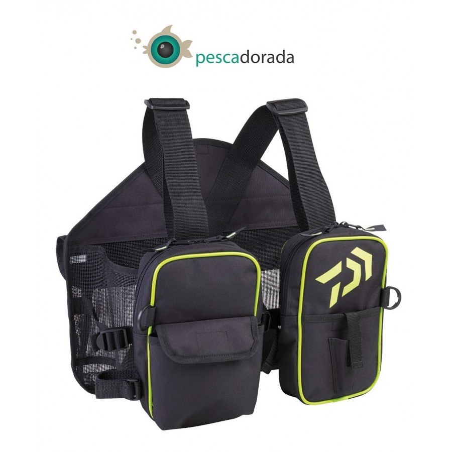 Ingenioso chaleco de pesca que permite tener al alcance de la mano y en cualquier circunstancia todos los accesorios necesarios durante una partida de pesca itinerante o vadeando. Es la combinación de dos artículos indispensables para un pescador: ¡una prenda y almacenamiento! Se coloca como una chaleco de pesca, con dos bolsillos delanteros (24 x 15 x 6 cm) que pueden contener cada uno un estuche de talla media o dos pequeños. En la parte dorsal encontramos un ancho bolsillo de malla.