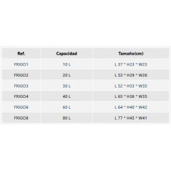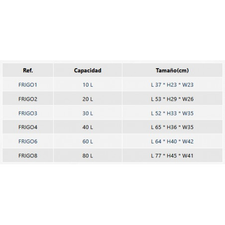 Neveras rígidas de gran capacidad, disponibles en seis tamaños: 10, 20, 30, 40, 60 y 80 litros, Totalmente herméticas, con asas ergonómicas.