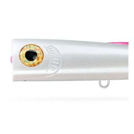 Lo llamamos Popper Mixto porque tiene varias aplicaciones y varias formas de trabajarlo. Con recuperas de velocidad media y pequeñas películas de muñeca, obtenemos el chapoteo de un andador de superficie, pero creamos muchas más salpicaduras. Al recuperar con sacudidas y movimientos erráticos, creamos una acción que simula muy bien un pez herido o una presa fácil para los depredadores al generar muchas salpicaduras y romper muy bien la superficie. Si damos tirones largos, obtenemos el movimiento de un popper de buceo a medida que el señuelo desciende de la capa superficial del agua y genera muchas burbujas, cruciales para atraer la atención de los depredadores y atraerlos a morder.