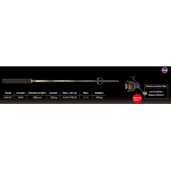 Su blank de gran nivel, fabricado con carbono 30T procedente de japón incorpora el nuevo acabado “Cross diamond”. Se siente cómoda y eficiente en el lance, siendo capaz de proyectar con soltura un amplio rango de señuelos de distintos pesos y demuestra gran solvencia y determinación en combate. Este óptimo balance entre las dos facetas de la pesca a popping la hacen una caña equilibrada y confortable que nos ayudará a minimizar la fatiga física generada por esas frenéticas jornadas características de la pesca a popping. Está montada con anillas Fuji MNAG-KWAG con bastidor de acero inox frosted dark gray e interior Alconite. Viste portacartetes Fuji DPS. Está pensada para su uso con señuelos de hasta 150g y líneas Max PE #6. Se sirve en funda de tela con divisiones internas y cierre de velcro.