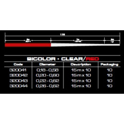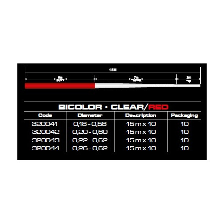 Está diseñado para soportar con solvencia las cargas más exigentes a la que se pueda someter un puente de línea, traspasando durante la descarga toda la energía y potencia generadas en el blank, minimizando la perdida por absorción. En el diagrama adjunto se puede observar que los puentes constan de dos partes, una cónica y otra paralela, ofreciendo esta última unos calibres y resistencia que permiten cargas brutales. Por otro lado, su perfil BICOLOR, rojo en toda la zona paralela, nos dará una referencia clara del momento en que el puente empieza a entrar en el carrete, dato que nos será de gran ayuda, sobre todo durante el combate a pie de orilla y/o durante las jornadas de pesca nocturnas.