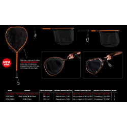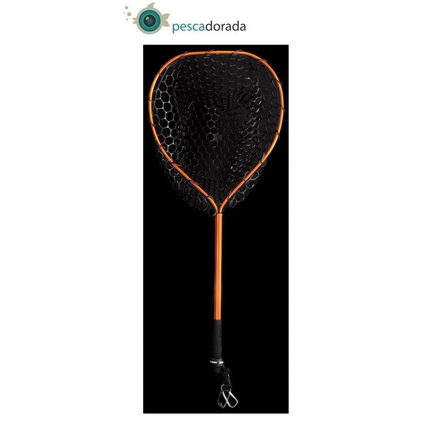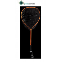 ¡El accesorio que no debe faltar en tus salidas de spinning! Ideal para aquellos pescadores que necesitan una sacadora de vadeo de grandes dimensiones o para pescar desde el kayak. Fabricada en aluminio anodizado naranja. Su malla es 100% de goma para evitar que las coronas o triples de nuestros señuelos se enreden en ella. Tiene una longitud total de 100cm y las medidas de su cabeza son de 45cm x 50cm. El mango está terminado en espuma EVA HD, tiene una longitud de 100cm y la cabeza tiene un diámetro de 45cm. La profundidad de la malla es de 35cm y su calado es de 30mm. Dispone de una correa con anclaje rápido y mosquetón para poder colgar.