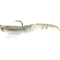 El camarón parecido a la vida presenta un cuerpo segmentado que muestra una acción de cola de aspecto natural. Piernas realistas nadan y patean en la caída, mientras que el diseño de fondo plano mantiene el cebo en posición vertical cuando descansa en el fondo.