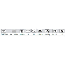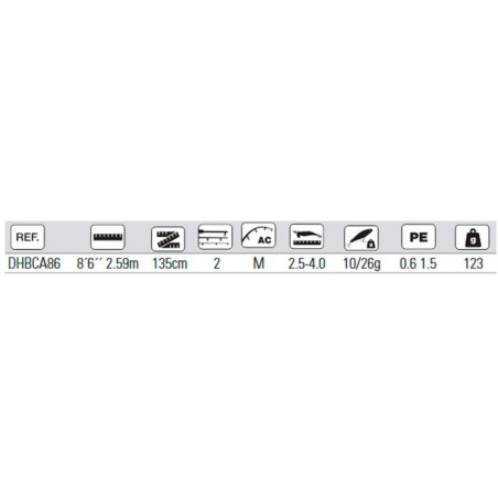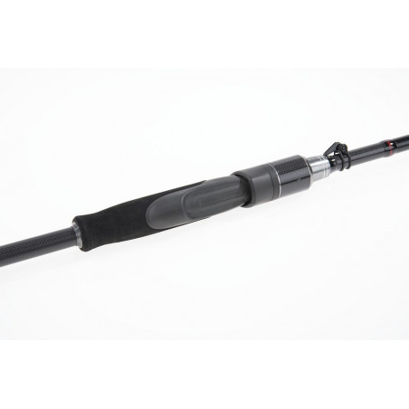 Blank tubular fabricado en carbono alto módulo con mango monocasco. Montada con anillas FUJI K ALCONITE. Portacarrete FUJI VSSM/B+TVSK con ciere de carbono. Funda protectora de malla acolchada.