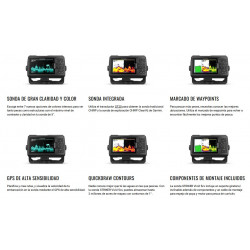 Escoge entre 7 nuevas opciones de colores intensos para ver tanto peces como estructuras con el máximo nivel de contraste y claridad en tu sonda de 5″.