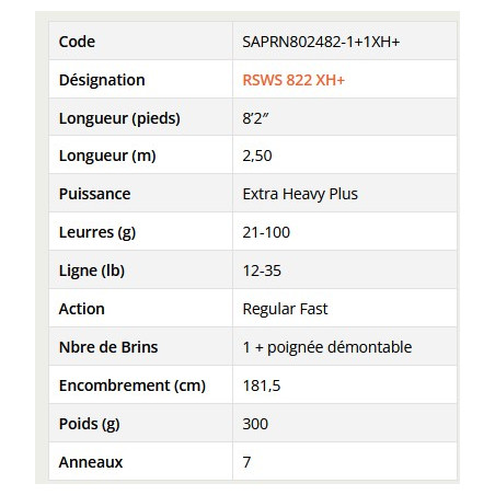 Su longitud es perfecta para lanzar a distancia, en medio de cacerías fulgurantes. Con 2,50 m, el brazo de palanca es más que suficiente. También le ayudará a animar correctamente su señuelo a distancia y a golpear con eficacia. El pomo de combate acanalado le permitirá utilizar un arnés de gimball o de un solo cubo.