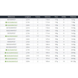 Las BG Seabass se renuevan y siguen siendo la caña ideal para combinar con los reconocidos carretes del mismo nombre. Estos potentes blanks están diseñados en carbono HVF montado con tecnología x45, lo que le da a la caña una fuerte resistencia a las curvas y torsiones, así como un retorno más rápido a la forma inicial. Equipadas con amnillas Fuji Alconite Concept, las cañas BG cubren toda la pesca en el mar con una gama de tamaños de 2,13 a 3,20 m y pesos que oscilan entre 5 y 120 g al lanzar. BG significa históricamente Black Gold y estas cañas optan por una cosmética negra y dorada tan elegante que vas a pensar que tienes en las manos un buque insignia de la gama. El porta-carretes de carbono, las anillas de color humo, los detalles de carbono en el talón o las ligaduras de color negro mate elevan el diseño a la calidad del carbono.