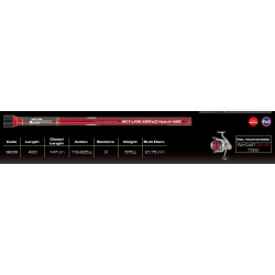 Está construida con carbono trenzado “XBR” 24/30T. Dispone de anillas antienredos Fuji BC-LCOG con bastidor “Low rider” de acero inoxidable. La puntera híbrida Flexi-tip Hybrid™ nos indica con fidelidad lo que sucede en cada momento al otro lado de la línea.