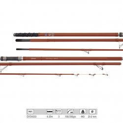 Hi-Modulus Carbon. Anillas Fuji Titanium LC Low Rider SIC. Anilla de salida invertida. Grip ergonómico en contera. Portacarrete Fuji DPS de rosca con almohadilla. Puntera híbrida injertada en carbono macizo Tournament Hybrid TIP. Casquillos de refuerzo. Sistema G-way de montaje rápido. Funda protectora Vercelli.