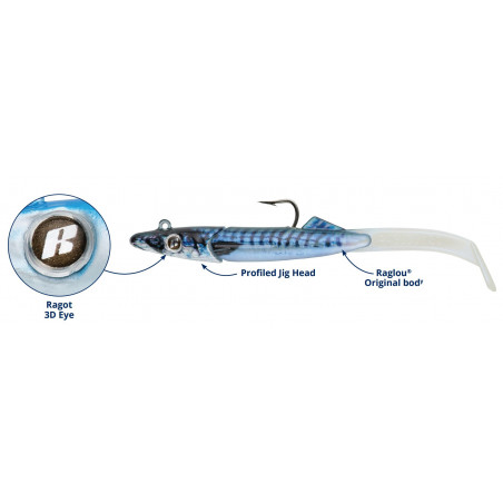 Los nuevos VINILOS RAGOT RAGLOU HYBRID 120 MM son los clásicos Raglou de toda la vida, a los que les han incorporado una jig head, con lo que ahora se pueden lanzar sin necesidad de utilizarlos con una bombeta u otro tipo lastre externo. Esta nueva remodelación del señuelo no interfiere en su natación y hace que el señuelo siga teniendo la misma efectividad de siempre pero ahora con el lastre incorporado. Su medida es de 12 cm y su peso 25 g.