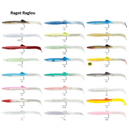 La cola fina, elástica y resistente contribuye a crear un movimiento ondulatorio del señuelo. El Raglou imita a la perfección el movimiento de un alevín de lanzón o un alevín de pez.