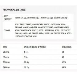 El Major Craft Eely Shad es un señuelo blando particularmente eficaz y versátil, diseñado para imitar al lanzón, una presa popular para peces marinos como la lubina, el pez napoleón, el abadejo, el carbonero, el bacalao y muchos más.
