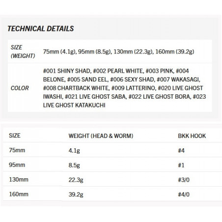 El Major Craft Eely Shad es un señuelo blando particularmente eficaz y versátil, diseñado para imitar al lanzón, una presa popular para peces marinos como la lubina, el pez napoleón, el abadejo, el carbonero, el bacalao y muchos más.