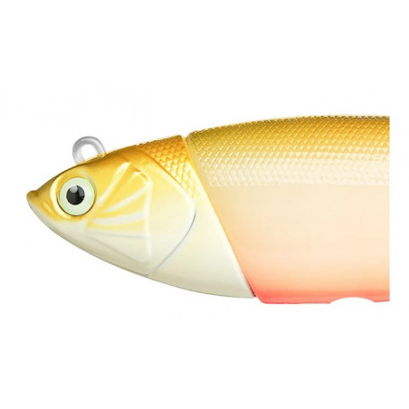La cabeza y los ojos del señuelo están recubiertos con un recubrimiento brillante especial. En el agua más profunda o menos ligera donde no hay demasiada luz, la cabeza y los ojos brillarán en la oscuridad atrayendo a los peces depredadores.